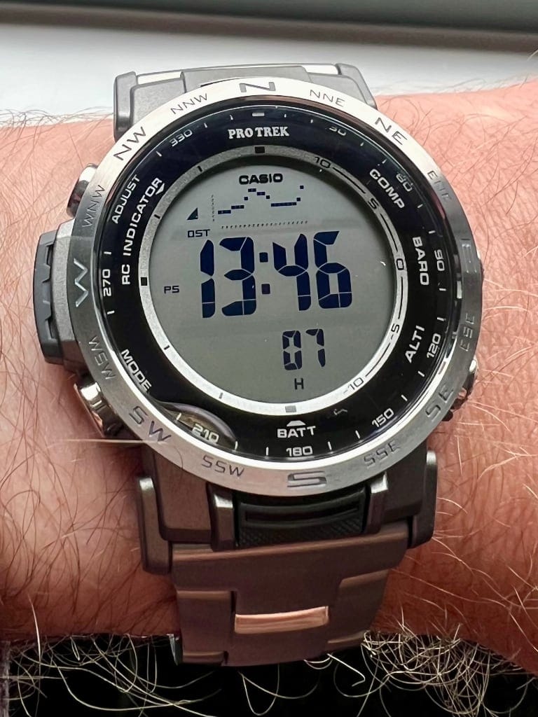 Meine neue Armbanduhr ist nicht connected mit irgendwas, zeigt die Zeit und hat ein paar "nice Features", sowie drückt sie eine deutliche Individualität aus, die in Zeiten der Smartwatch-Zombies auch durchaus einen Reiz hat. Es handelt sich um eine Casio Pro Trek PRW-35TLD-7